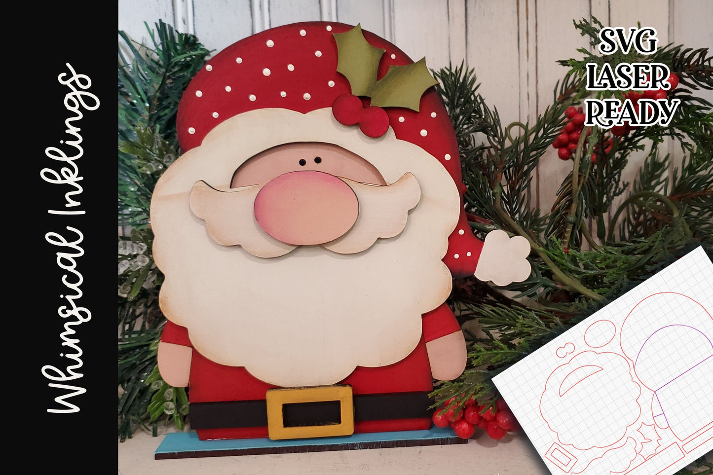 Get this adorable little standup Santa, as a laser ready SVG. No painting instructions are included. This is a digital download, and nothing will be shipped in the mail. It is an SVG for you to use on your glow forge or laser cutter.