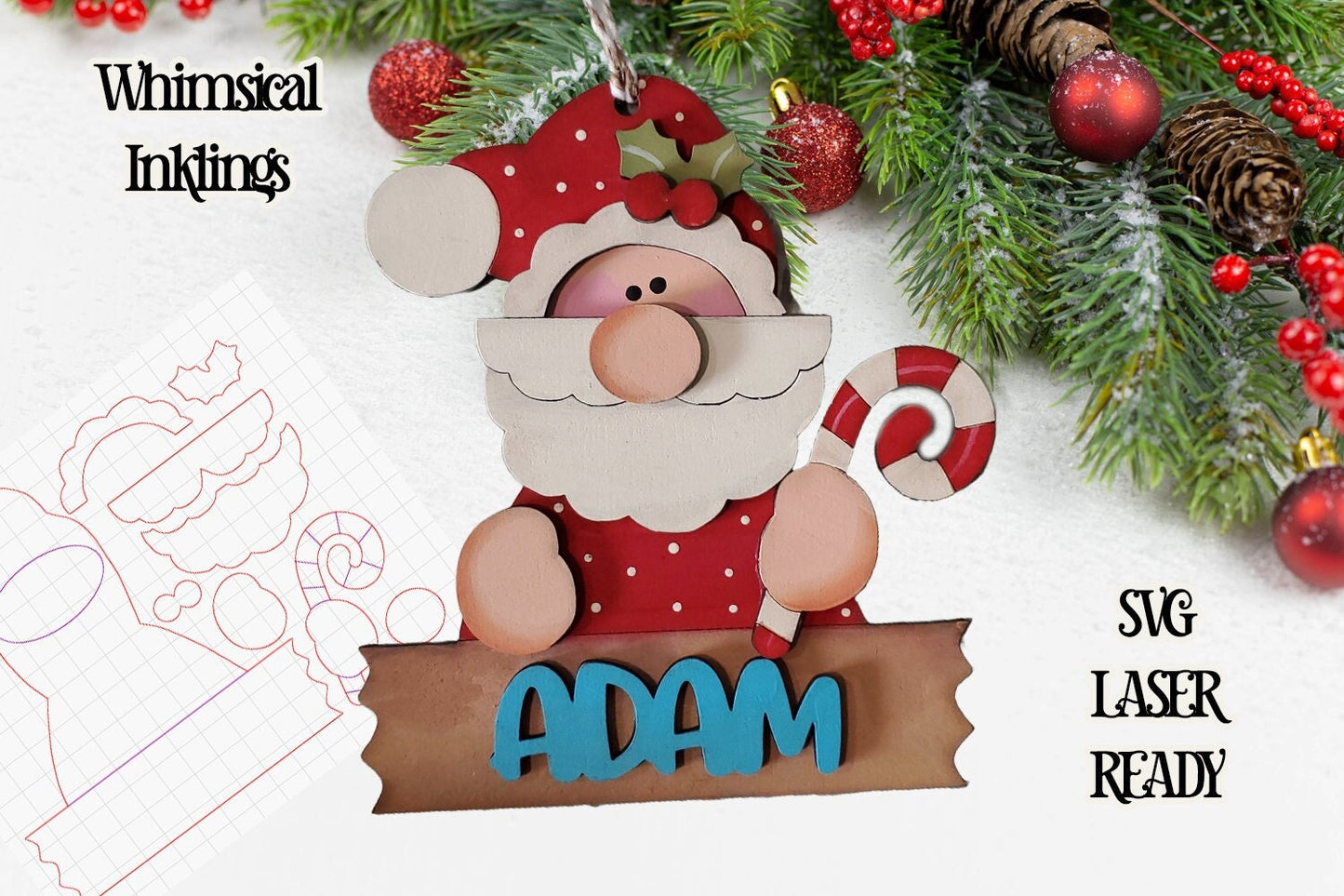Candy Cane Santa Ornament| Santa Claus SVG| Laser Cut Santa Ornament| Glow Forge| Ornament SVG
