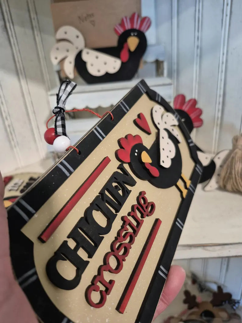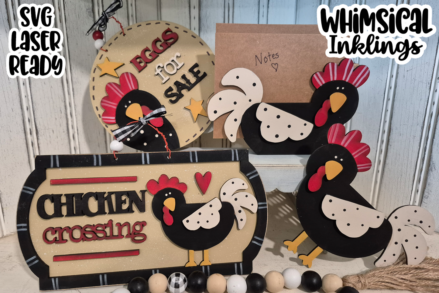 Chicken Crossing Laser SVG Set| Chicken Note Holder| Chicken Tiered Tray