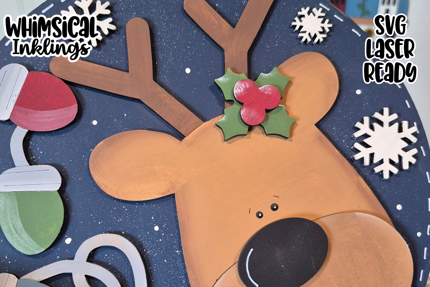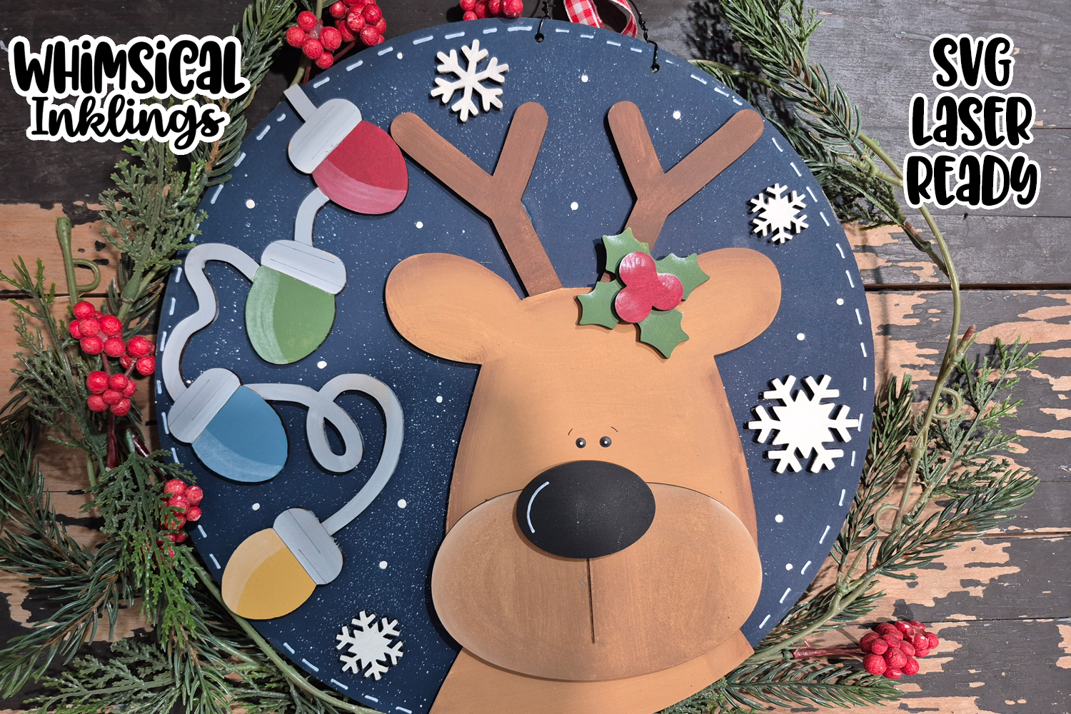 Christmas Lights Reindeer Sign Laser SVG