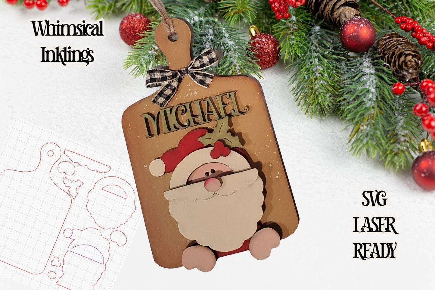 Jolly Santa Bread Board Ornament| Santa Claus SVG| Laser Cut Santa Ornament| Glow Forge| Ornament SVG