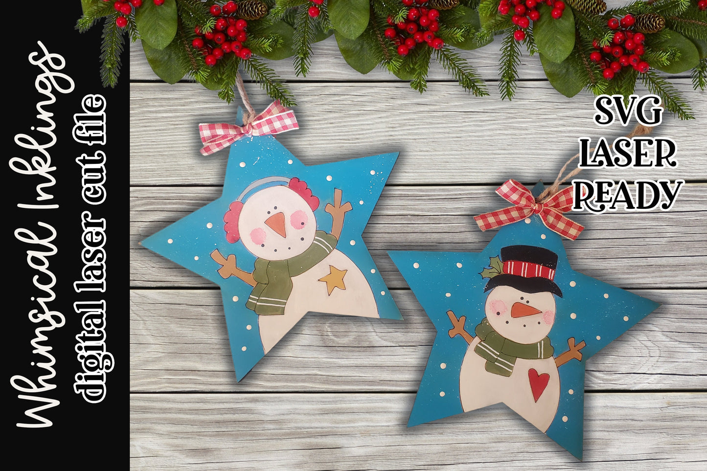 Star Snowman Ornament Set SVG| Laser Cut Snowman Ornament| Glow Forge| Ornament SVG