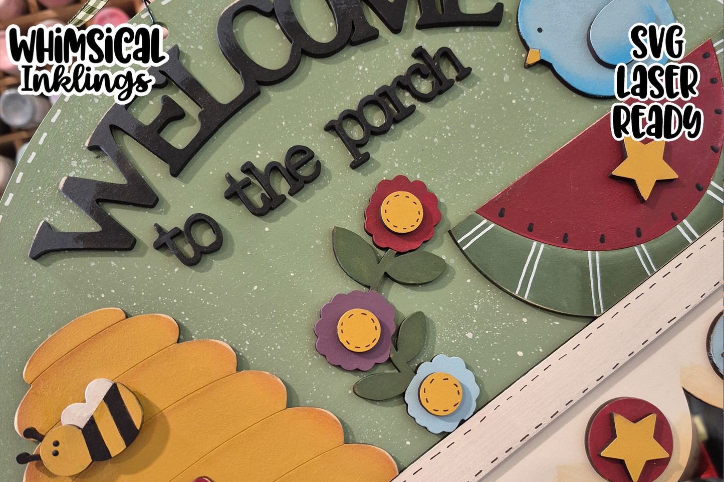 Welcome To The Porch Penny Rug Sign Laser SVG